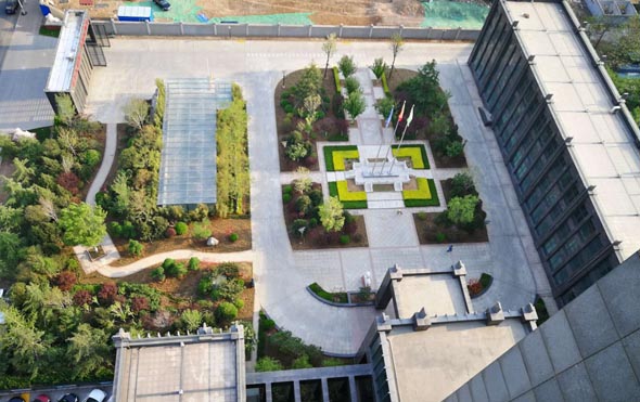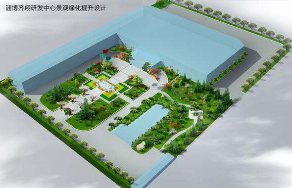 向日葵廣告為客戶設(shè)計(jì)的公司院內(nèi)景觀植物綠化三維效果圖(鳥瞰圖)。