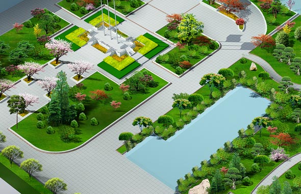 園林植物綠化三維效果圖