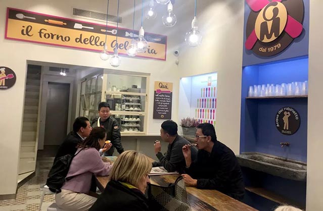 在意大利,柏拉蒙考察團研究了Gelato(意大利冰淇淋)。雖然Gelato風(fēng)是最近幾年才在中國刮起來的,但是作為意大利的國民甜品,其歷史也比工業(yè)冰淇淋悠久很多。考察團對產(chǎn)品渠道、產(chǎn)品包裝、店面形象等進行了詳盡調(diào)研。