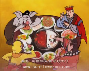 悟空:妖怪!哪里跑?! 妖怪:唐僧肉我不稀罕,我要到怪味樓吃火鍋去!